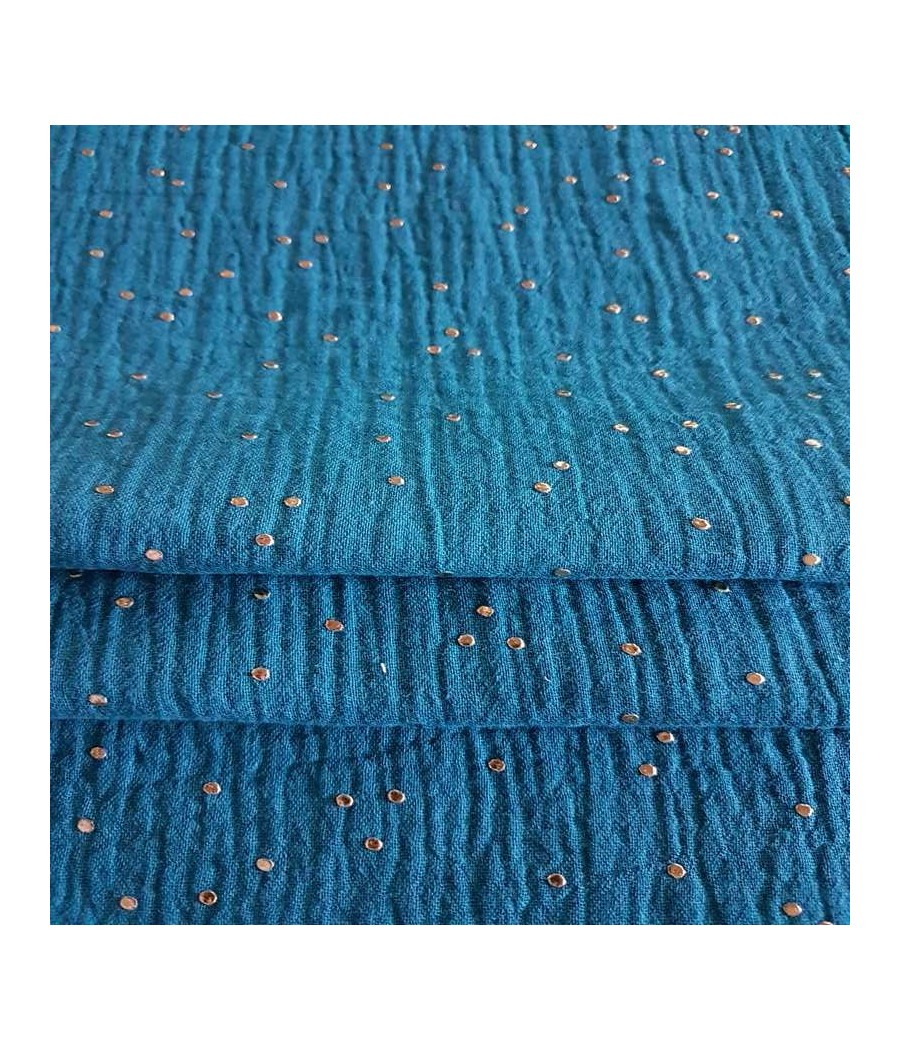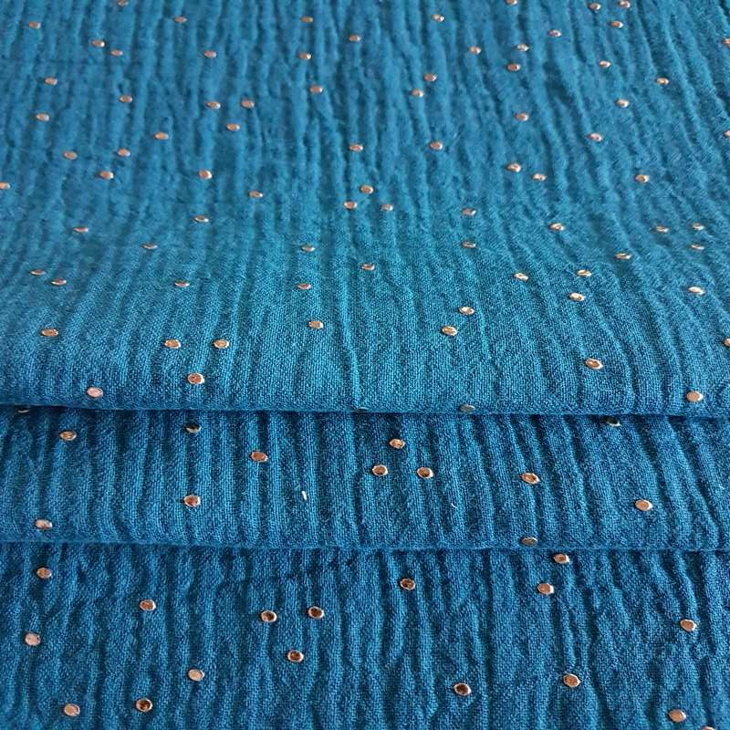 Très belle double-gaze coton à pois métal doré, très agréable à porter durant les chaudes journées d'été.