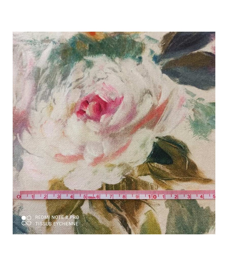Tissu ameublement - demi natté - Fleur - style anglais - crème et rose