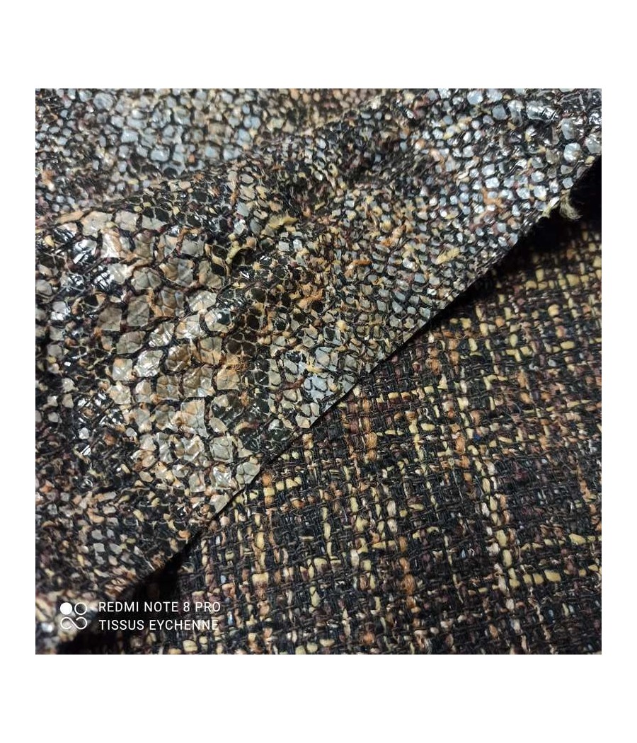 De style Chanel, avec 2 faces reversibles, l'une marron et l'autre marron avec une application effet peau de serpent légèrement brillante.