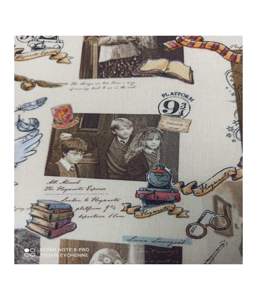Tissu coton sous licence Harry Potter avec les scènes du film et les personnages emblématiques de la saga. Pour tous les fans, et les autres...