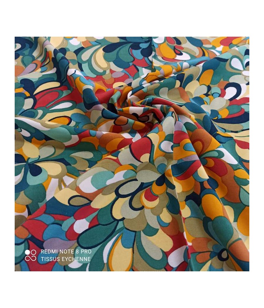Joli tissu coton souple, très agréable à travailler, à coudre, à porter.