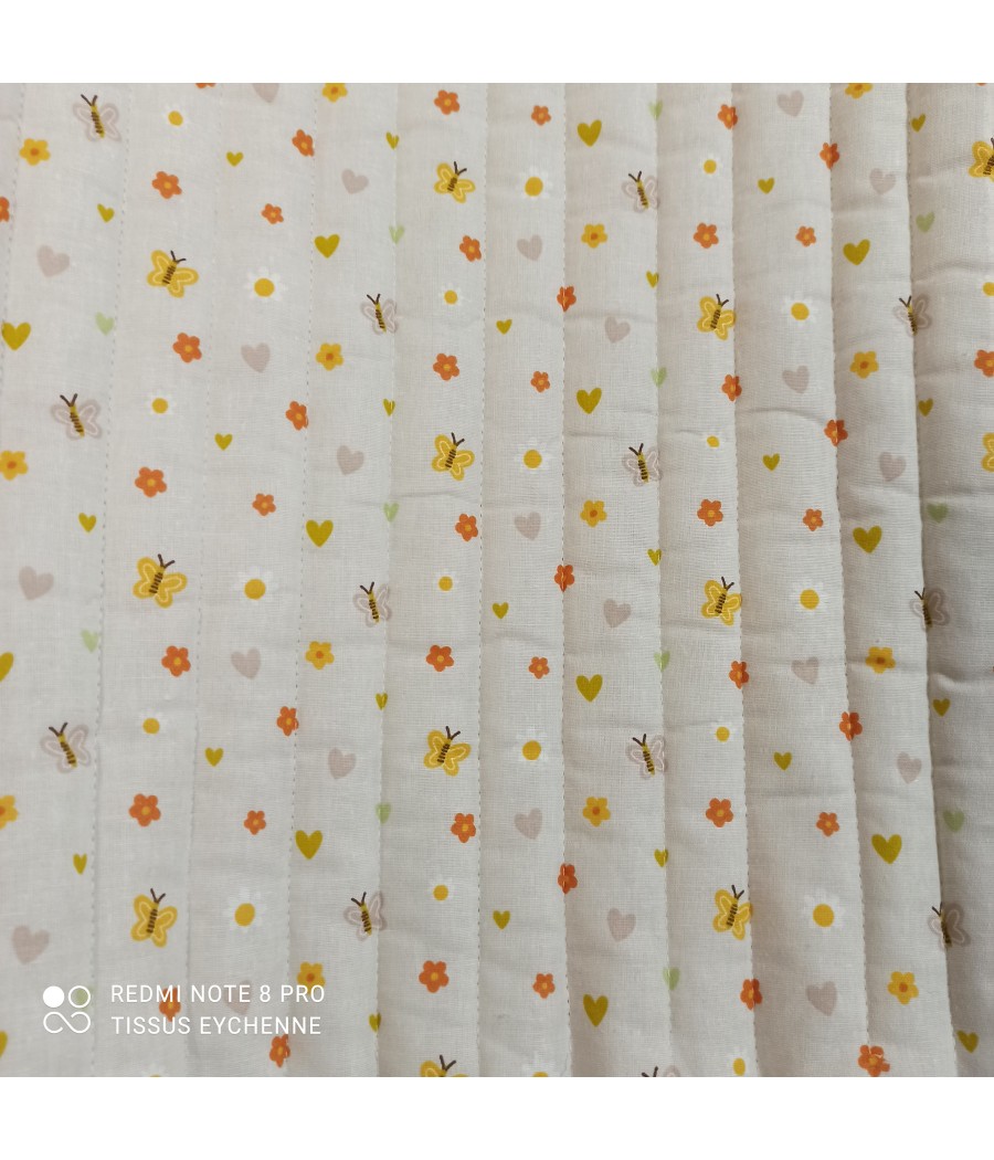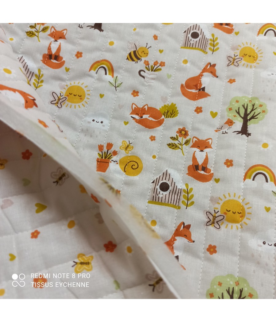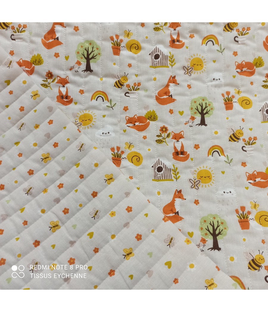 Joli tissu matelassé double face, coton imprimé réversible