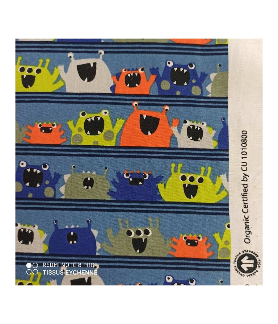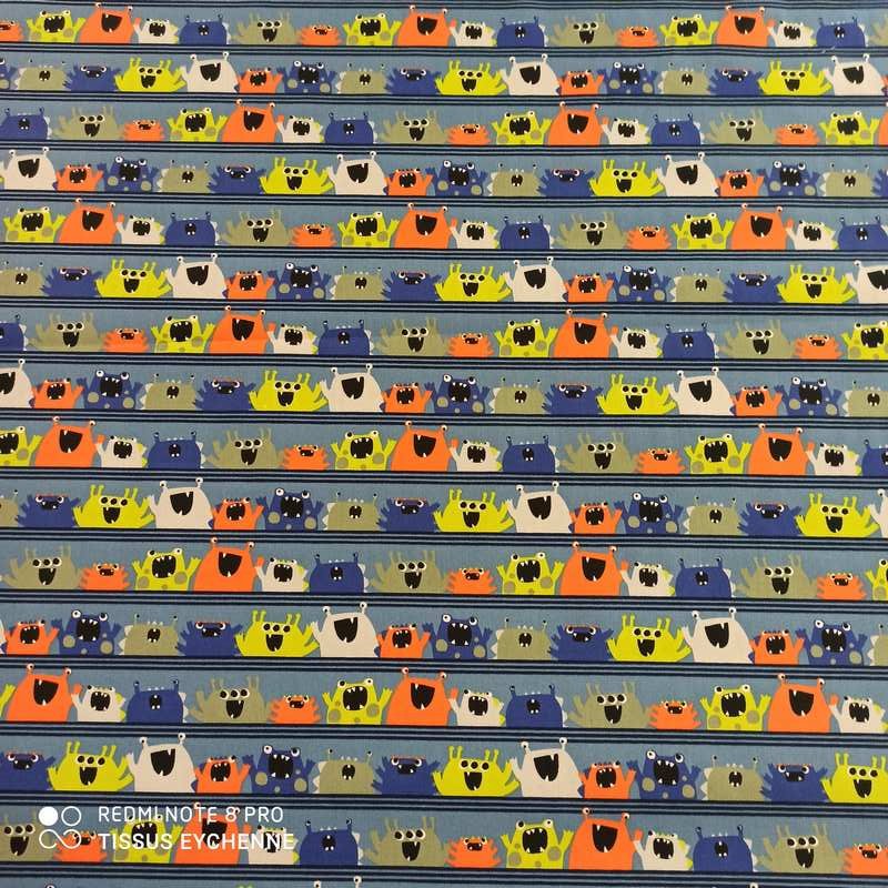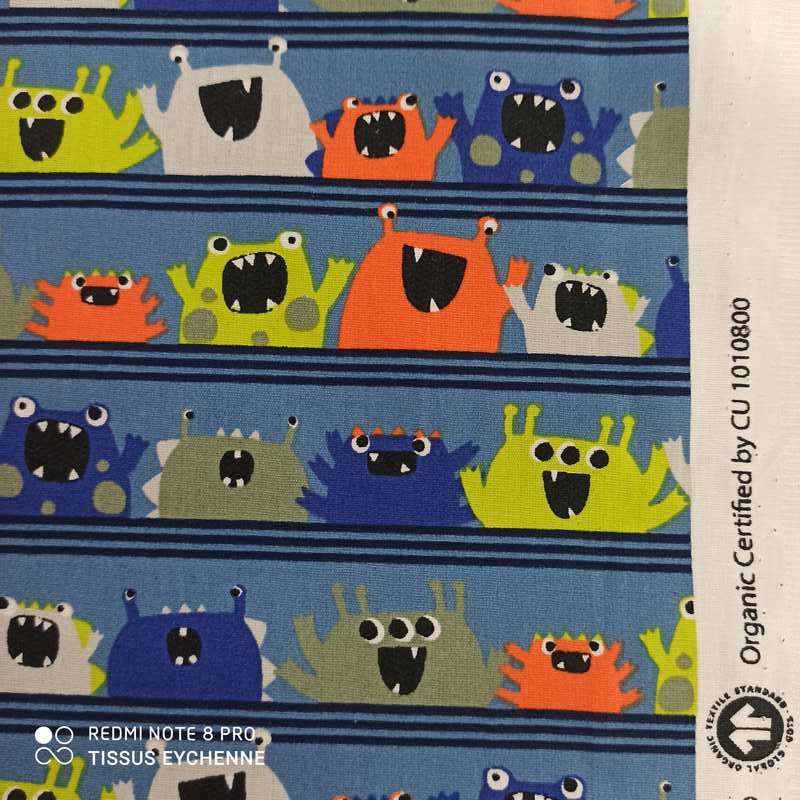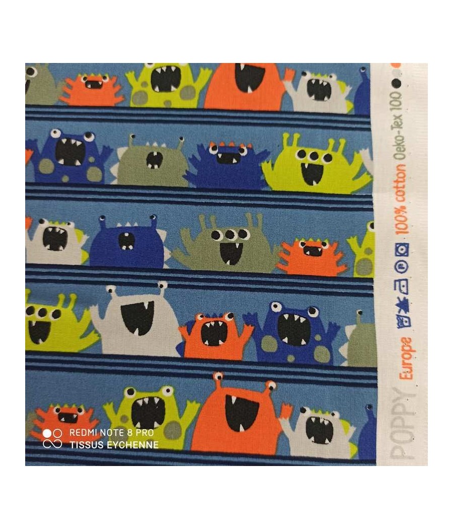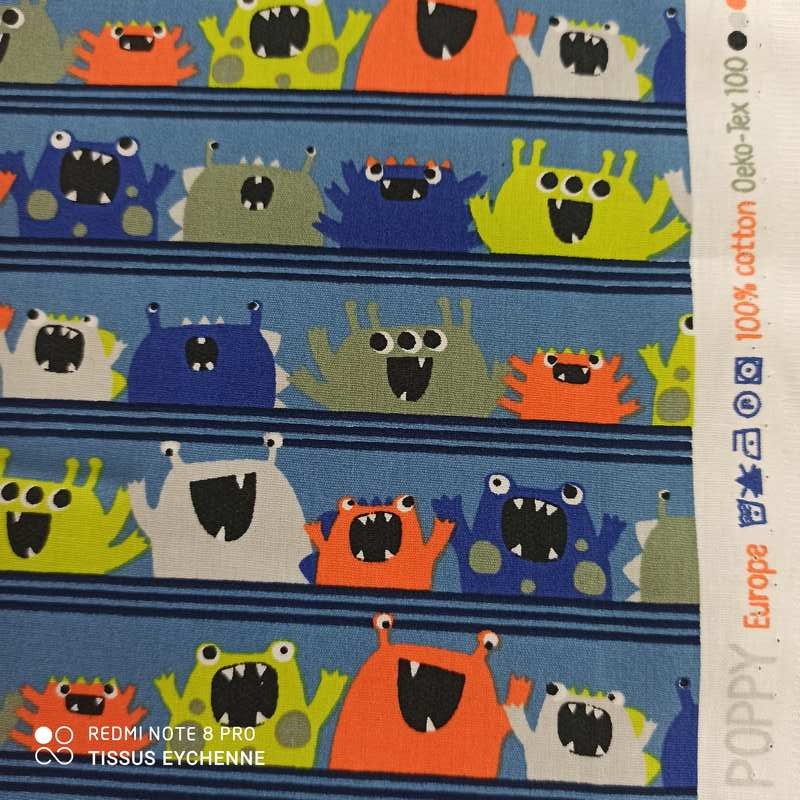 Tissu popeline de coton collection POPPY thème monstre sympa