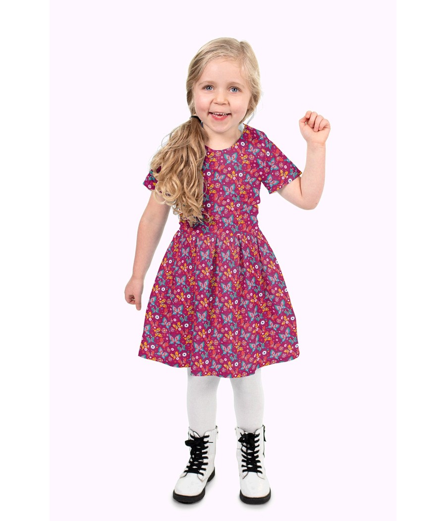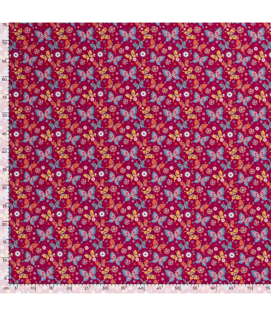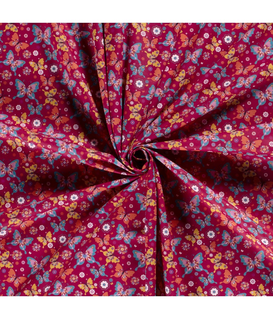 Tissu Popeline de coton - Papillon Lilou - Fushia