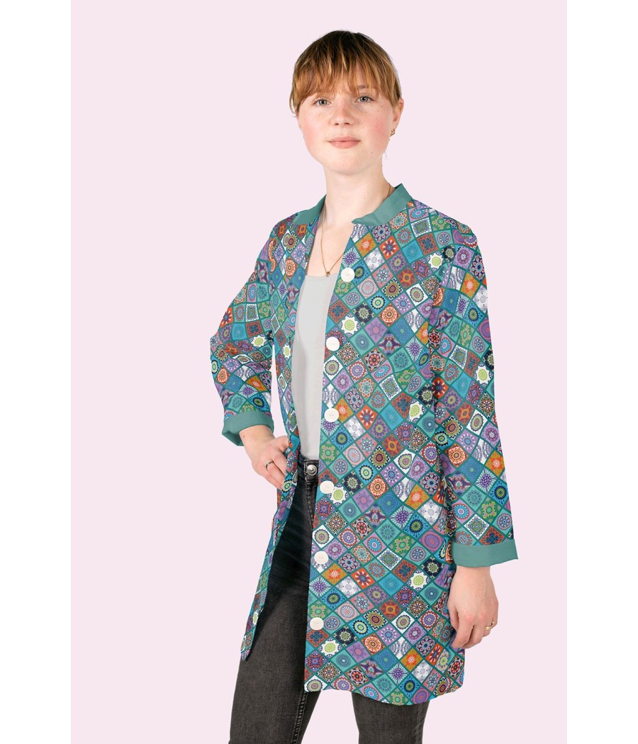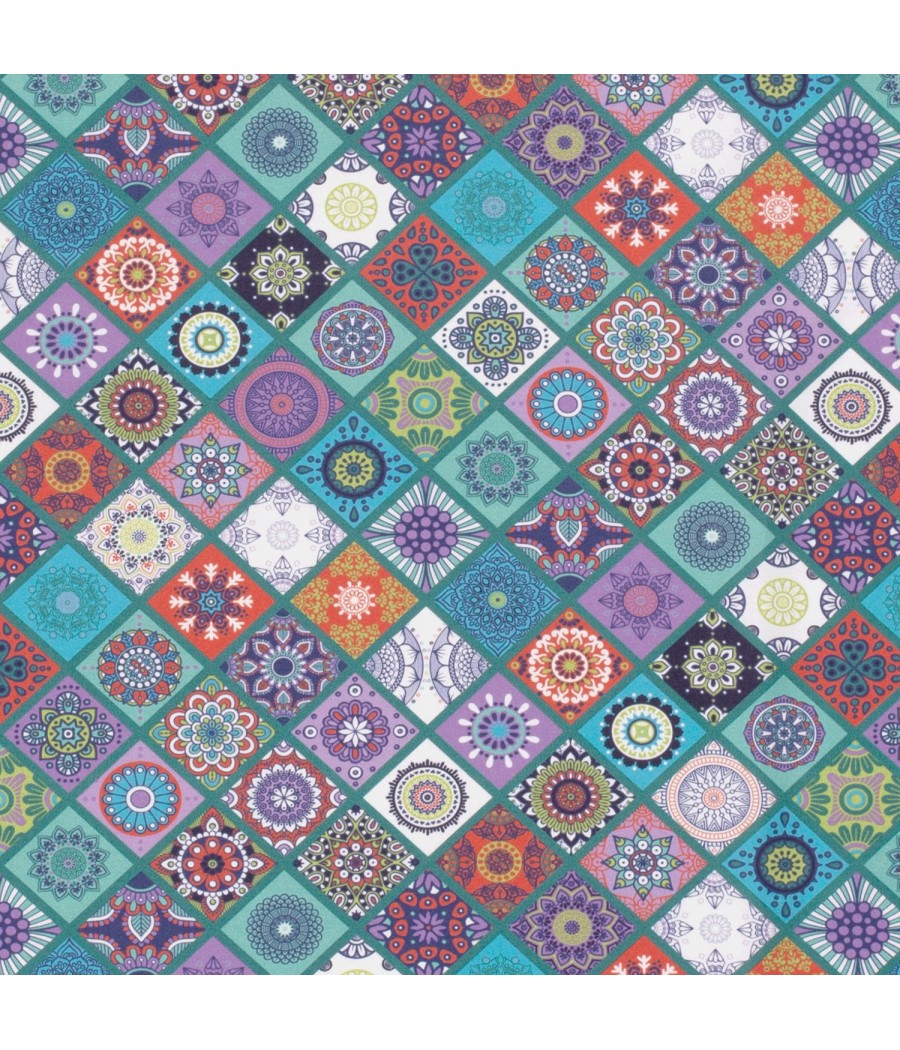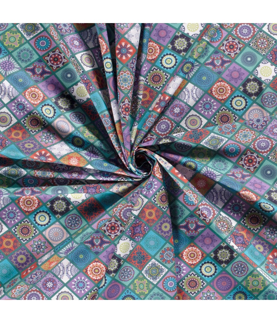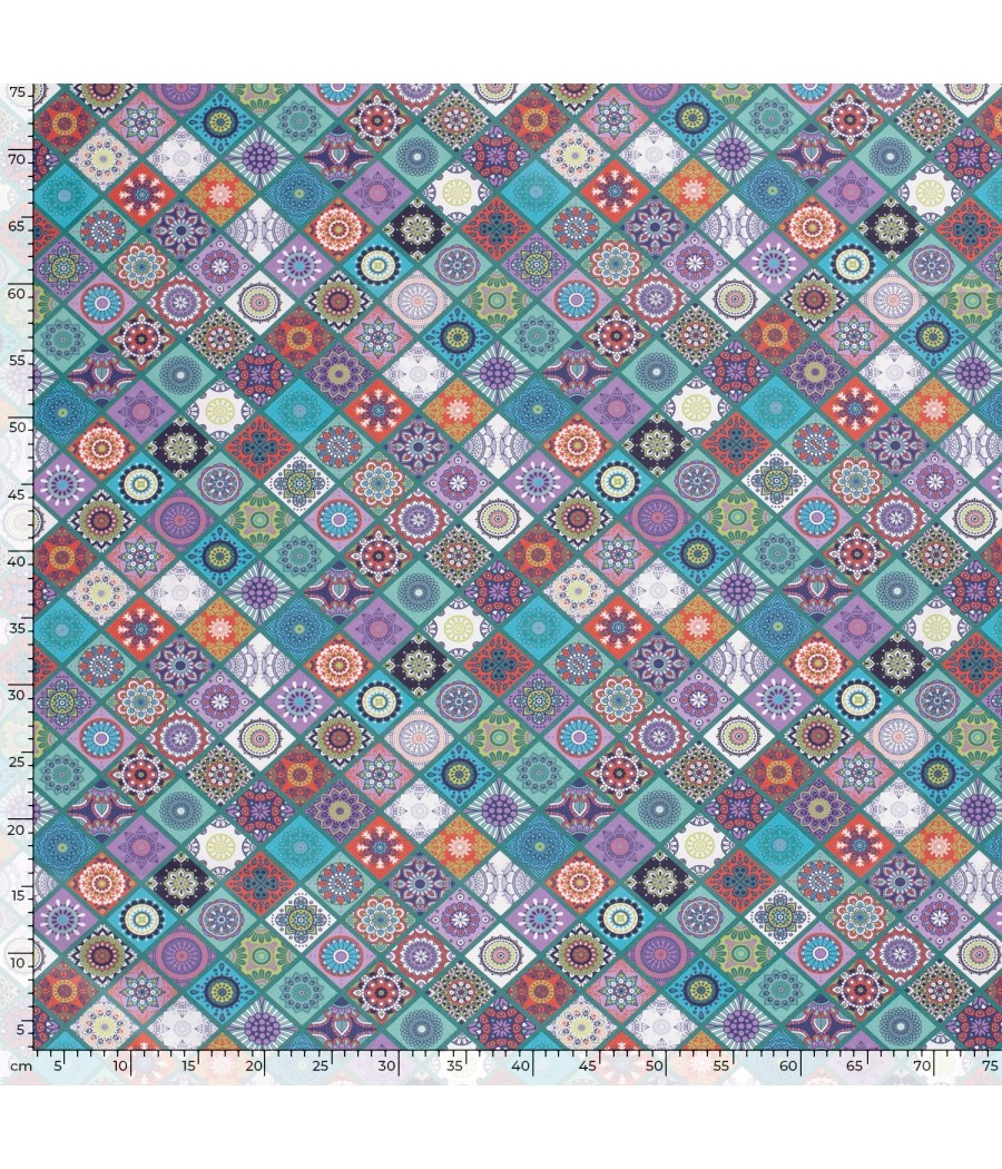 Tissu Popeline de coton - Losange Rosace Lilou - col.teal