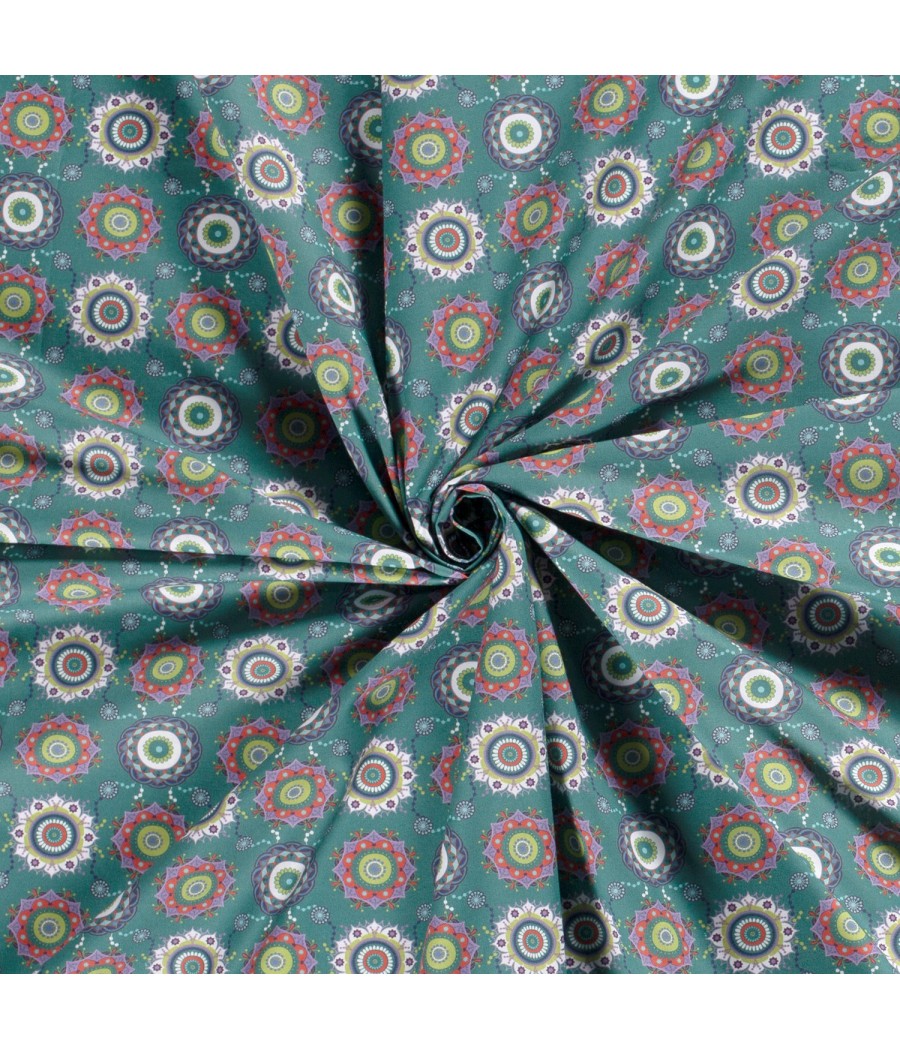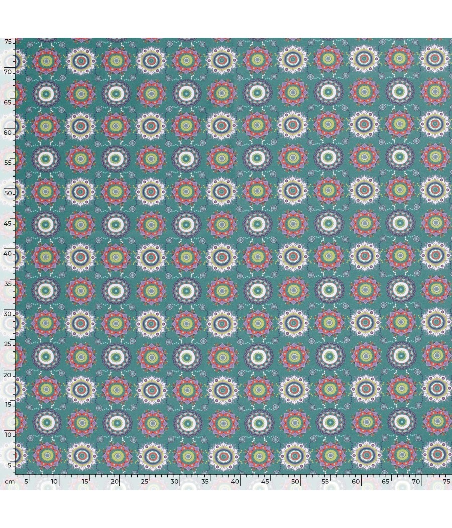 Tissu Popeline de coton - Rosace Lilou - col.teal